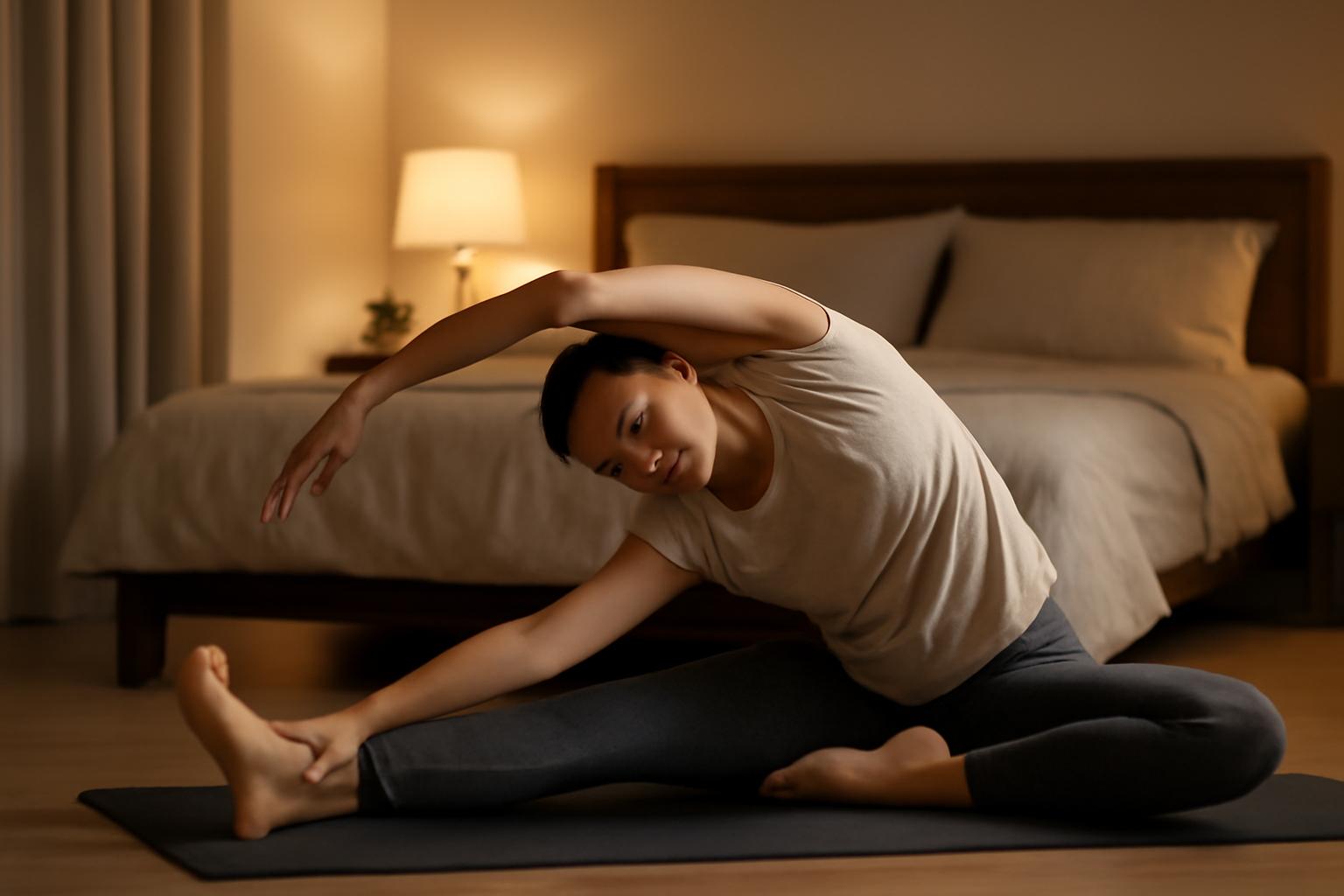 Étirements doux avant le coucher aident à la détente, améliorent l’endormissement et la qualité du sommeil pour beaucoup, sans remplacer hygiène du sommeil.