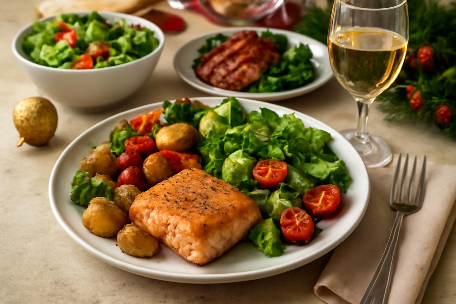 Priorisez le poisson en papillote, la volaille rôtie sans peau, ou une pièce de viande maigre simplement assaisonnée. Pour l’accompagnement : légumes rôtis aromatisés (romarin, thym, zeste d’orange), purée de céleri-rave légère, ou un mélange de céréales complètes (épeautre, quinoa) pour la satiété.