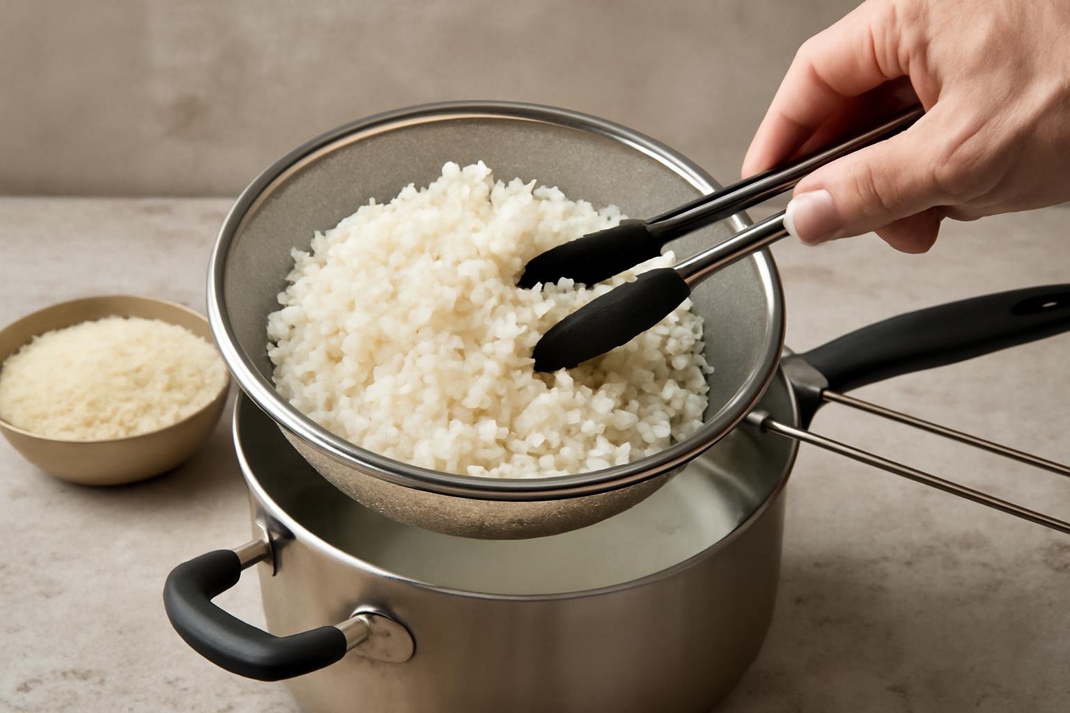 Évitez de remuer le riz pendant la cuisson, car cela libère de l’amidon et le rend collant. Laissez les grains tranquilles, ils ont besoin de leur espace personnel.