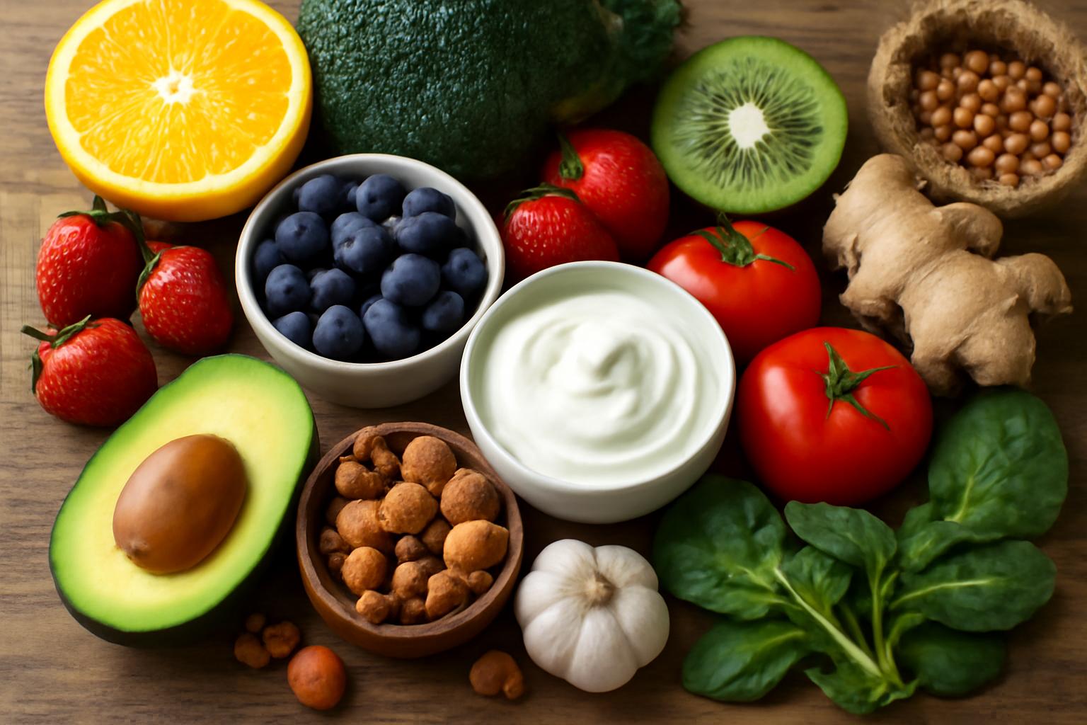 Yaourts, kéfir, choucroute non pasteurisée et kombucha apportent des probiotiques. Les fibres solubles (oignons, ail, poireaux, bananes, légumineuses) jouent le rôle de prébiotiques pour nourrir les bonnes bactéries — un microbiote en forme, c’est souvent une immunité plus efficace.