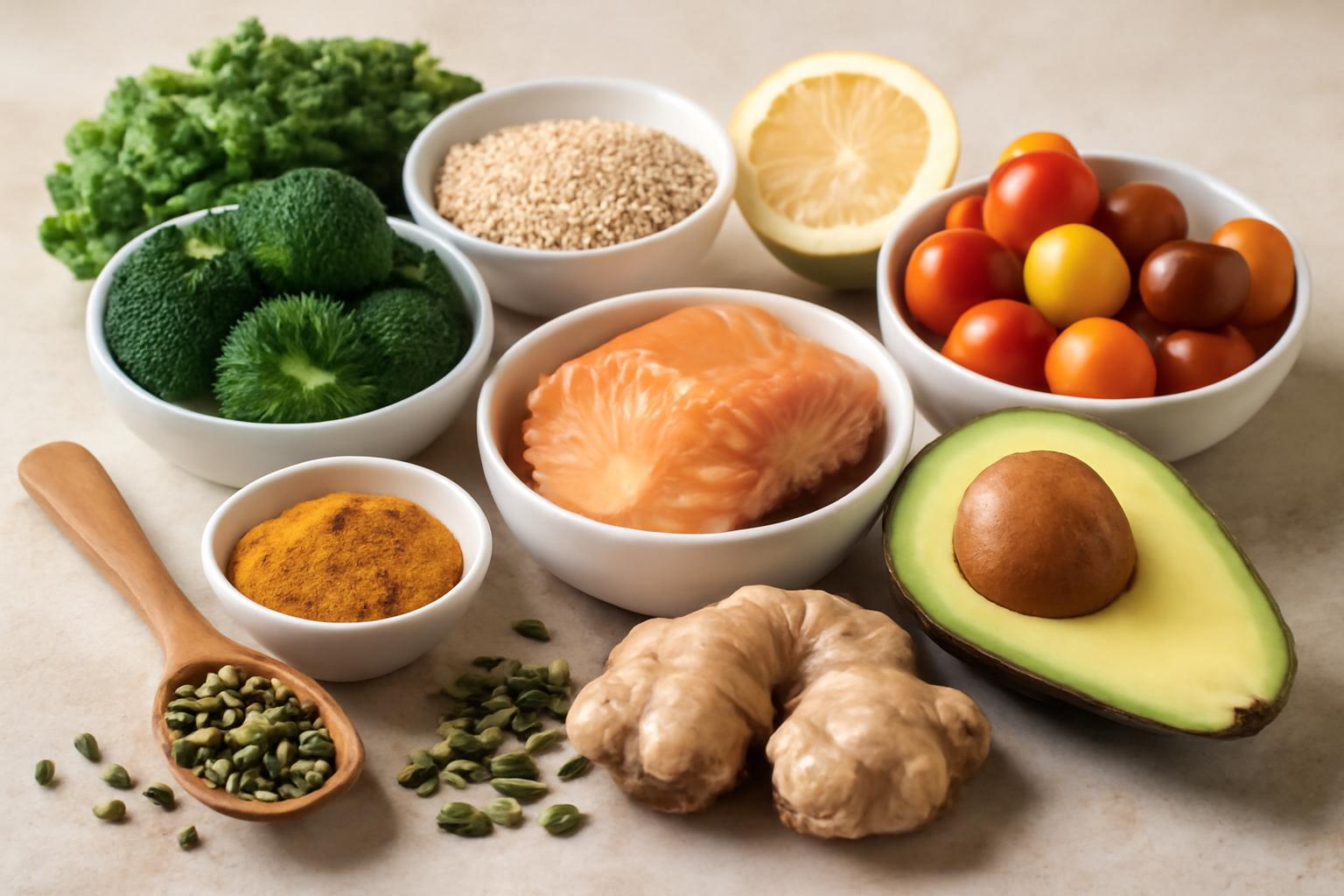 Curcuma (à associer au poivre noir pour améliorer l’absorption), gingembre et ail ont des propriétés anti‑inflammatoires documentées. Le thé vert (catéchines) est aussi un bon allié pour réduire le stress oxydatif.