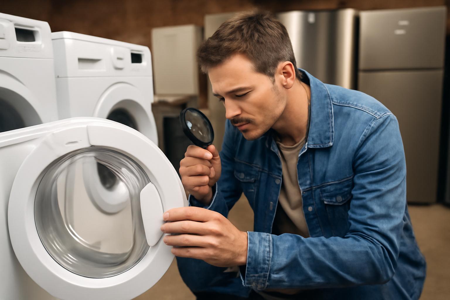 Commencez par vérifier l’annonce et le modèle : notez la marque, le référence/modèle et l’année. Comparez le prix aux appareils similaires et au coût d’une réparation fréquente (moteur, pompe, résistance…). Un appareil très bon marché peut coûter cher en réparations.